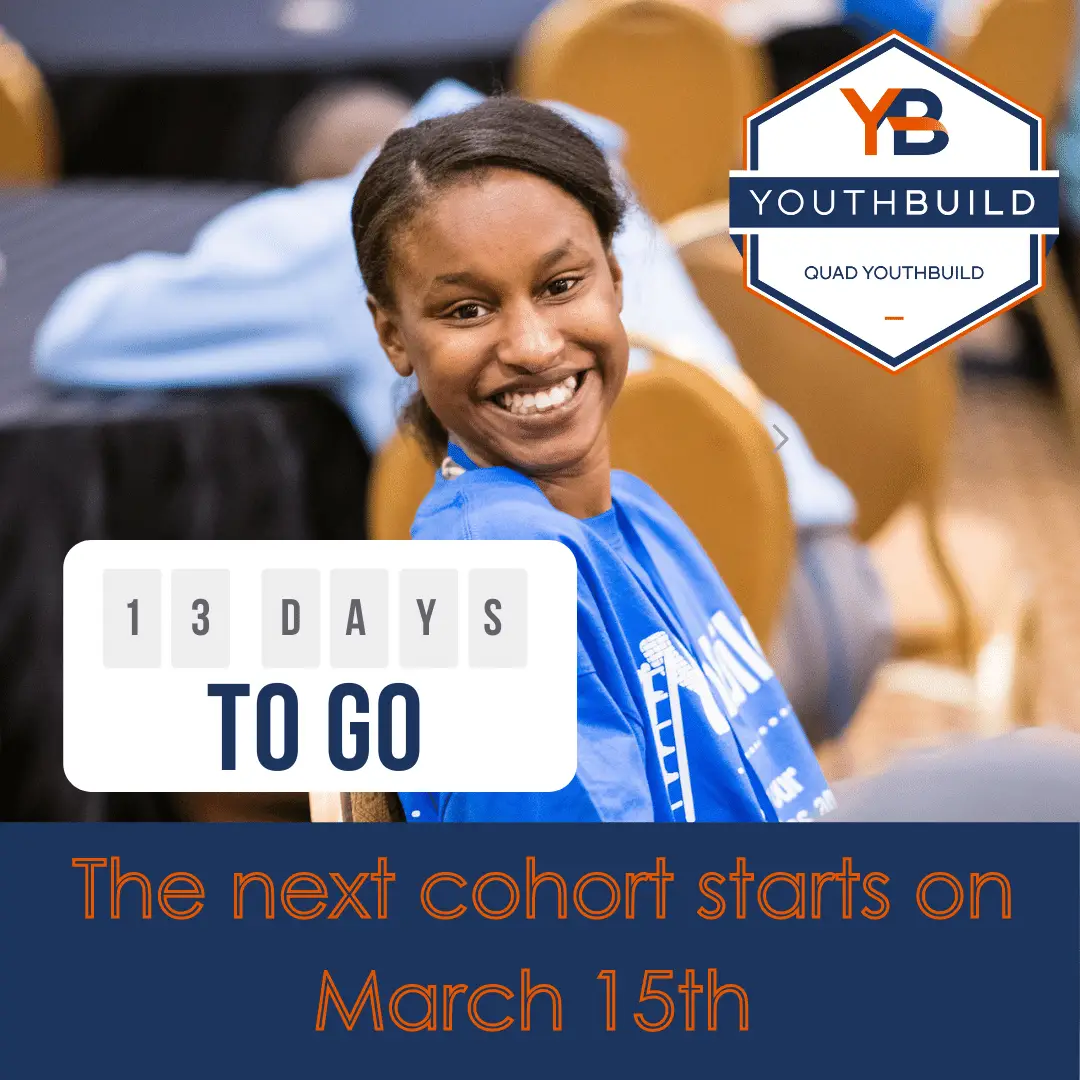 You still have time to sign up for the next Quad YouthBuild cohort which begins March 15th! Visit our office at 45300 N. Baptist Rd or contact us at 225-567-2350 for more information.
